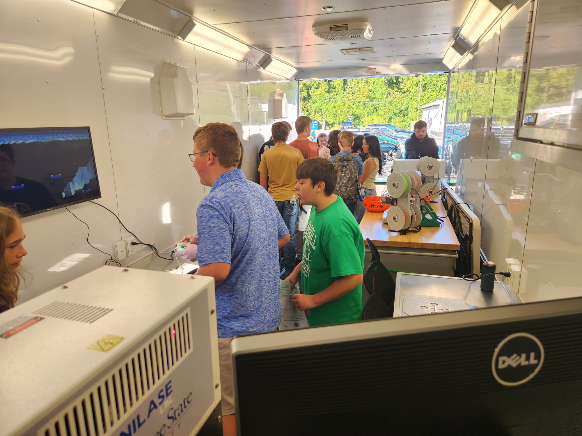 One of my duties as Department Chair is to visit high schools and do similar outreach. Sometimes this is more manufacturing-oriented (CAD, Plastics, Electro-Mechanical), but I always try and sneak in some advertising for the gaming program. On September 10, 2025, I visited Chesapeake High School. In the Manufacturing on the Move trailer, I set up a station where students could play "Delve."