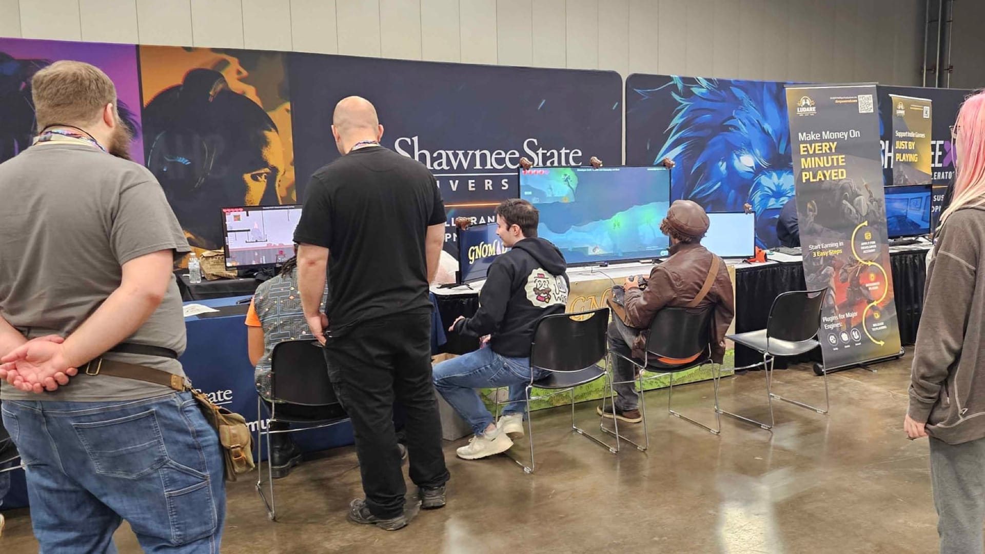 The journey of JollyWare started right here at Shawnee State. Elijah, Kyle, and former team member Andrew, first began developing Gnomad as students, honing their skills in our classrooms and labs. After graduation, they transformed their academic project into a professional studio where they picked up Connor. They continued to build and refine Gnomad while showcasing it at events like GDEX, GDC, and SGC. Their growth from students to studio owners shows their dedication and the strong foundation they built at SSU.